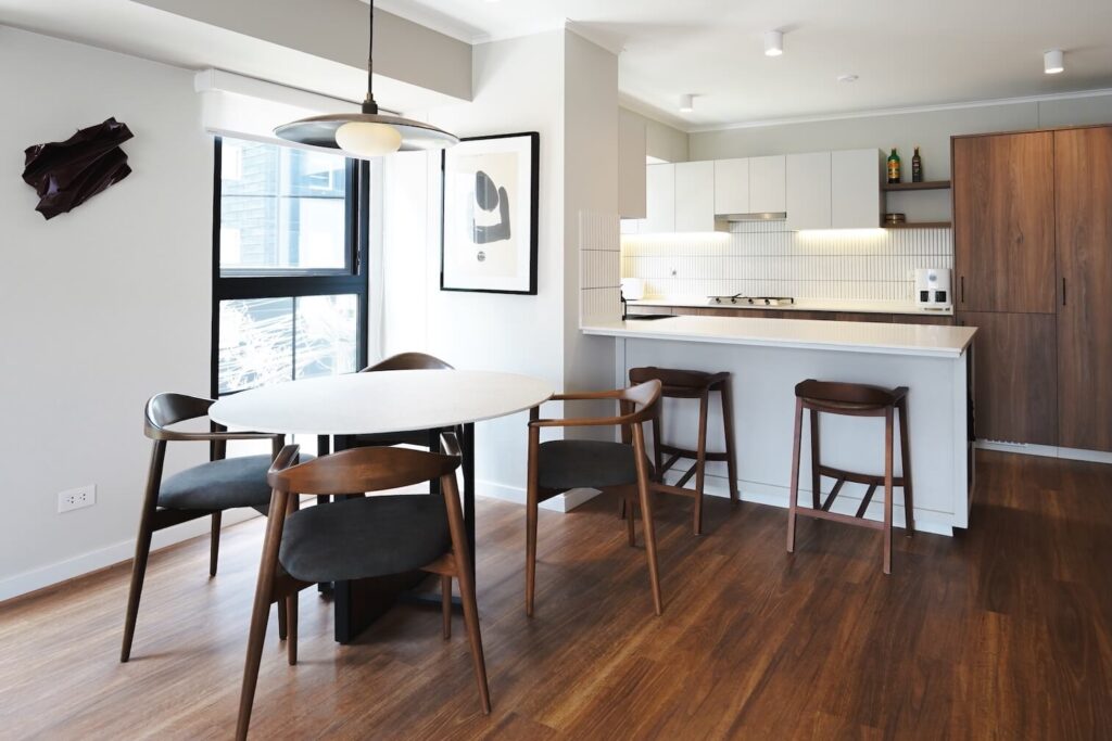 Su rutina diaria es sencilla. Sale temprano a trabajar en una fintech y regresa por la tarde. Desayuna rápido antes de salir —huevos y café— y los viernes a veces trabaja desde casa, en un estudio que acondicionó en uno de los dormitorios. Los fines de semana, el departamento cambia de ritmo: llegan amigos, se abren botellas de vino y se prende la parrilla en el balcón que da al pasaje verde del edificio.